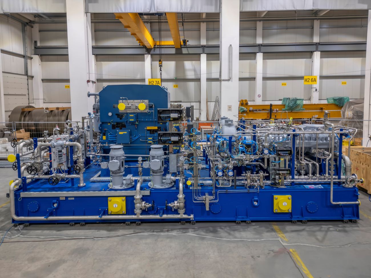 Demand for hydrogen is rising, but compressing this low-density gas is challenging. Everllence has more than 50 years of expertise in hydrogen compression. For electrolyzers up to 300 MW, the flow can be handled by a single compressor unit bringing the hydrogen from atmospheric pressure to approximately 16 bar.
